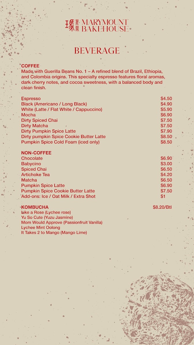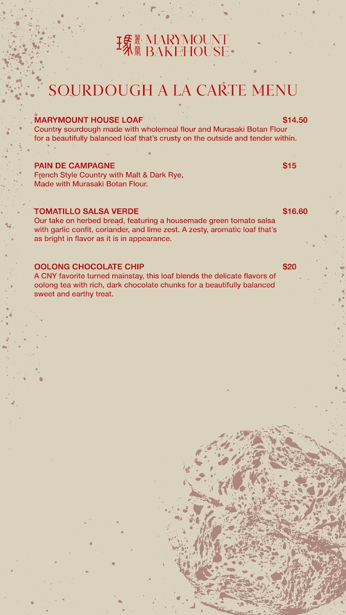 Marymount Bakehouse Singapore Menu